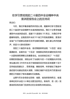在学习贯彻党的二十届四中全会精神中央宣讲团报告会上的主持词.docx