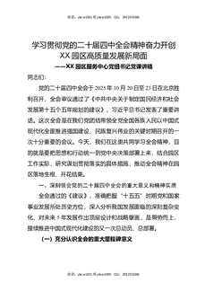 学习贯彻党的二十届四中全会精神奋力开创XX园区高质量发展新局面——XX园区服务中心党组书记党课讲稿.docx