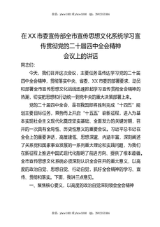 在XX市委宣传部全市宣传思想文化系统学习宣传贯彻党的二十届四中全会精神会议上的讲话.docx