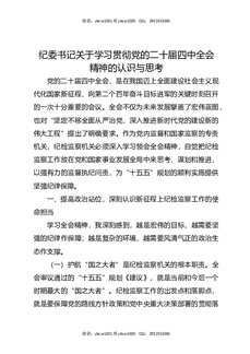 纪委书记关于学习贯彻党的二十届四中全会精神的认识与思考.docx