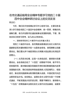在市交通运输局全会精神专题学习党的二十届四中全会精神研讨会议上的交流发言.docx