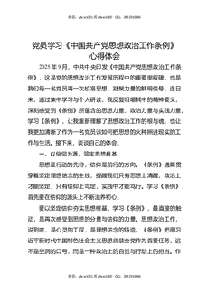 党员学习《中国共产党思想政治工作条例》心得体会.docx