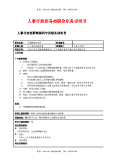人事行政部各类职位职务说明书.docx