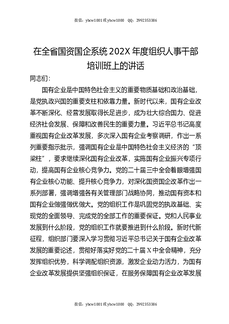 在全省国资国企系统202X年度组织人事干部培训班上的讲话.docx