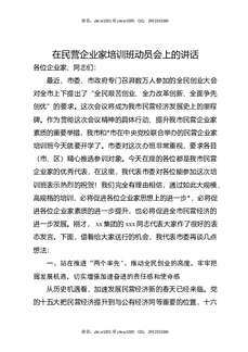 在民营企业家培训班动员会上的讲话.docx