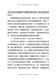 在企业纪检监察干部理论培训班上的交流发言.docx
