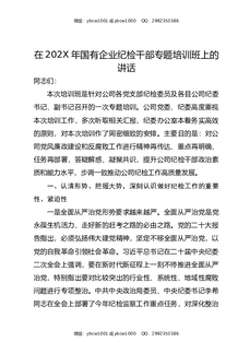 在202X年国有企业纪检干部专题培训班上的讲话.docx