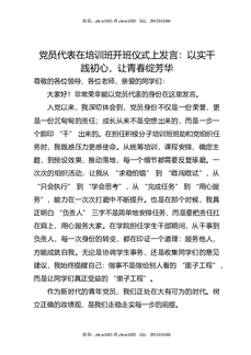 党员代表在培训班开班仪式上发言:以实干践初心,让青春绽芳华.docx