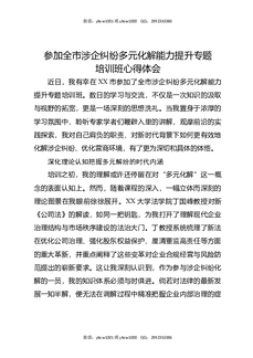 参加全市涉企纠纷多元化解能力提升专题培训班心得体会.docx