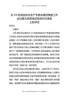 在XX区旅游安全生产专委会第四季度工作会议暨文旅领域应急培训与演练上的讲话.docx