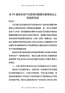 在XX县安全生产业务培训暨警示教育会议上的动员讲话.docx