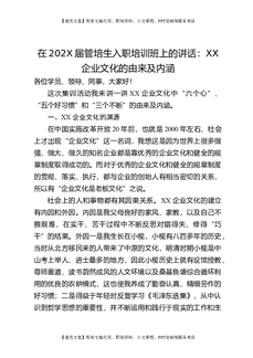 在202X届管培生入职培训班上的讲话:XX企业文化的由来及内涵.doc