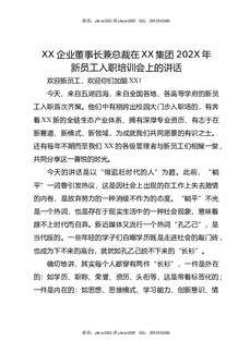 XX企业董事长兼总裁在XX集团202X年新员工入职培训会上的讲话.docx