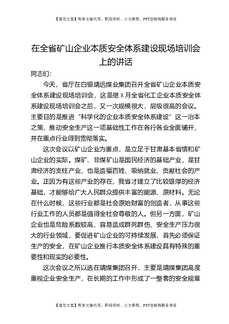 在全省矿山企业本质安全体系建设现场培训会上的讲话.doc