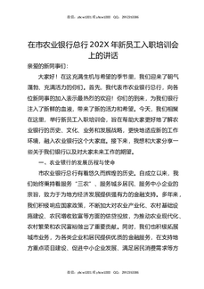 在市农业银行总行202X年新员工入职培训会上的讲话.docx