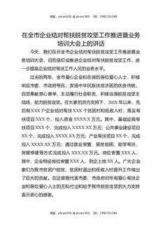 在全市企业结对帮扶脱贫攻坚工作推进暨业务培训大会上的讲话.docx