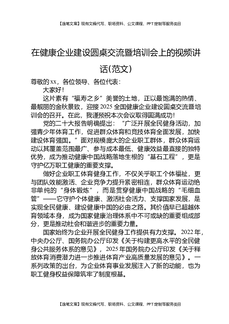 在健康企业建设圆桌交流暨培训会上的视频讲话(范文).docx
