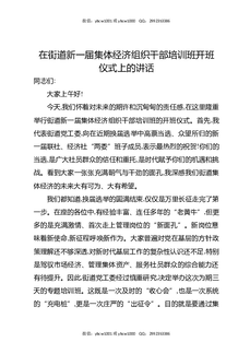 在街道新一届集体经济组织干部培训班开班仪式上的讲话.docx