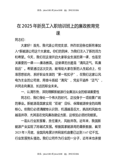 在公司新员工入职培训班上的廉政教育党课.docx