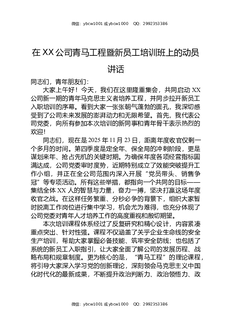 在XX公司青马工程暨新员工培训班上的动员讲话.docx