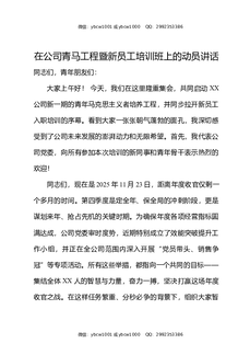 在公司青马工程暨新员工培训班上的动员讲话.docx