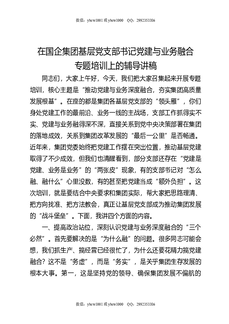 在国企集团基层党支部书记党建与业务融合专题培训上的辅导讲稿.docx