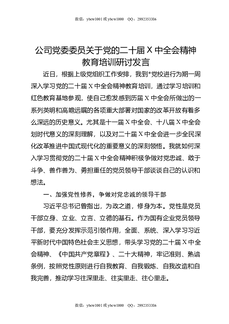 公司党委委员关于党的二十届X中全会精神教育培训研讨发言.docx