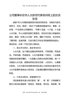 公司董事长在市人大新任代表培训班上的交流发言.docx