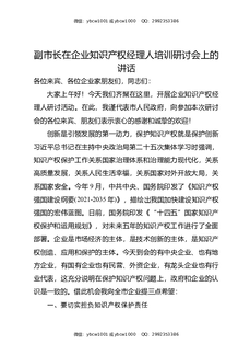 副市长在企业知识产权经理人培训研讨会上的讲话.docx