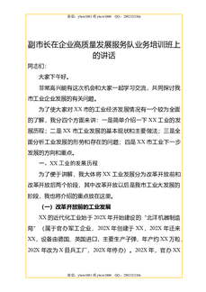 副市长在企业高质量发展服务队业务培训班上的讲话.doc