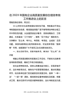 在202X年国有企业高质量发展综合绩效考核工作推进会上的发言.docx