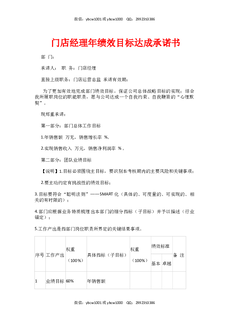 门店经理绩效目标达成合约书.docx