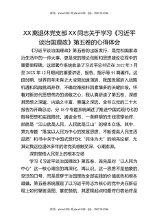 XX离退休党支部XX同志关于学习《习近平谈治国理政》第五卷的心得体会.docx