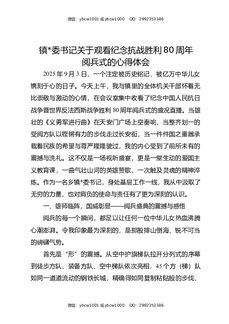 X镇党委书记关于观看纪念抗战胜利80周年阅兵式的心得体会.docx