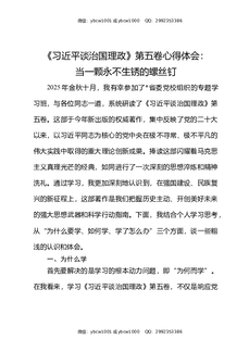 《习近平谈治国理政》第五卷心得体会:当一颗永不生锈的螺丝钉.docx