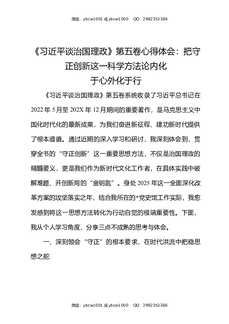 《习近平谈治国理政》第五卷心得体会:把守正创新这一科学方法论内化于心外化于行.docx