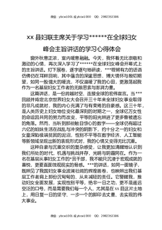 XX县妇联主席关于学习习近平总书记在全球妇女峰会主旨讲话的学习心得体会.docx