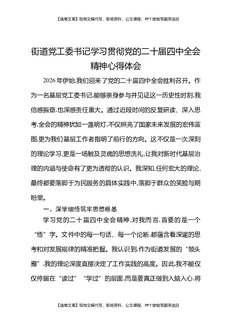 街道党工委书记学习贯彻二十届四中全会精神心得体会.docx