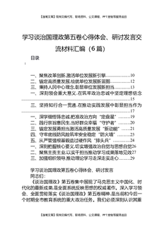 学习谈治国理政第五卷心得体会、研讨发言交流材料汇编(6篇).docx