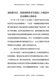 镇党委书记四级调研员学习党的二十届四中全会精神心得体会.docx