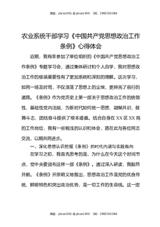 农业系统干部学习《中国共产党思想政治工作条例》心得体会.docx