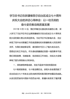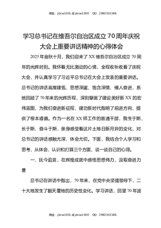 学习总书记在维吾尔自治区成立70周年庆祝大会上重要讲话精神的心得体会.docx