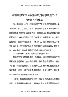 妇联干部学习《中国共产党思想政治工作条例》心得体会.docx