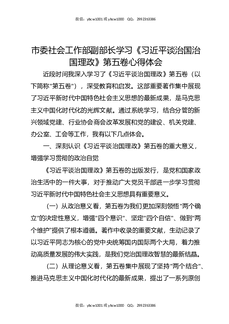 市委社会工作部副部长学习《总书记谈治国治国理政》第五卷心得体会.docx