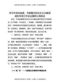 学习中央及省委、市委整治形式主义为基层减负专项工作会议精神心得体会.docx