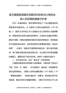 县卫健委医德医风专题培训班参训心得体会做人民信赖的健康守护者.docx