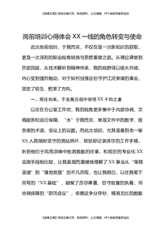 岗前培训心得体会XX一线的角色转变与使命担当.docx