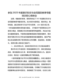 参加2025年度意识形态与全民国防教育专题培训班心得体会.docx