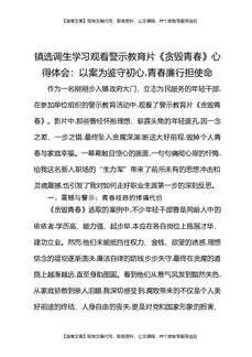 镇选调生学习观看警示教育片《贪毁青春》心得体会:以案为鉴守初心,青春廉行担使命.docx