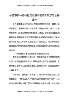 参加市新一届村社党组织书记培训班学习心得体会.docx